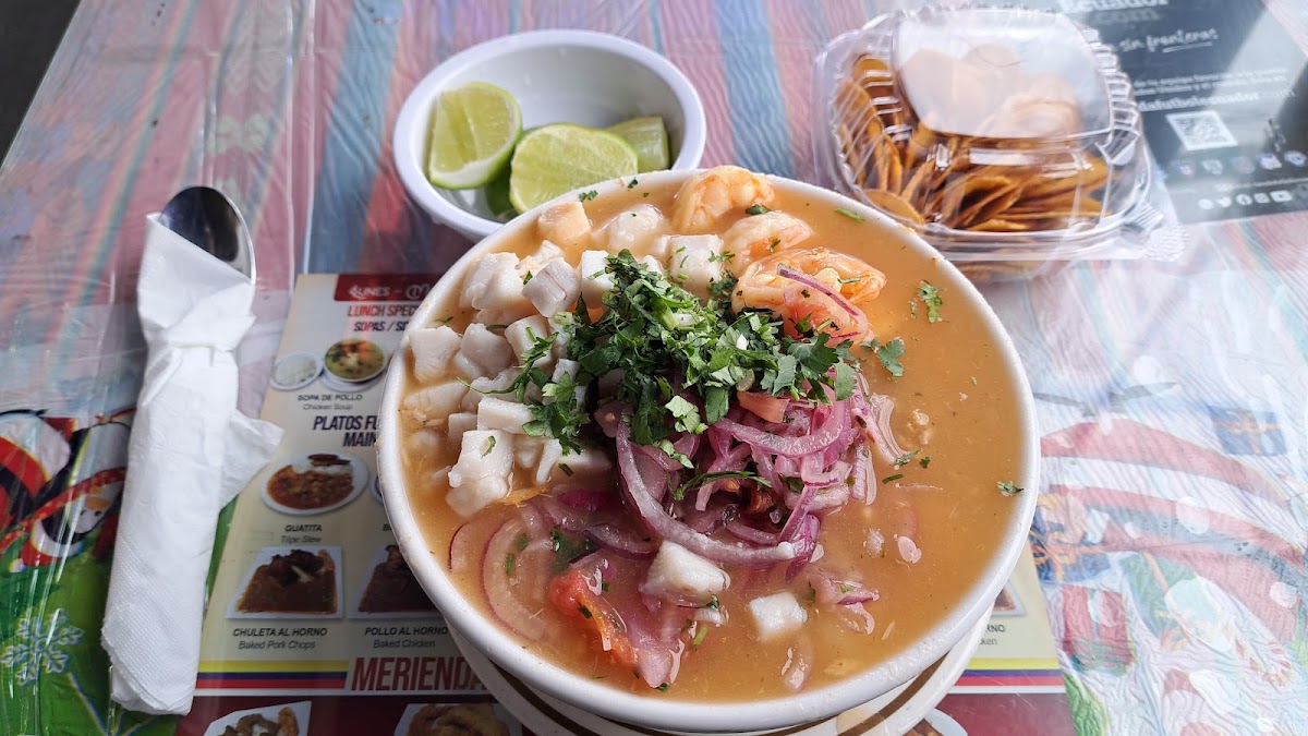 The menu reads like a greatest-hits list of Ecuadorian street food and home-style classics. There’s llapingachos with golden potato patties and peanut sauce, bolón de verde mashed fresh with cheese, and encebollado that locals swear by as both breakfast and cure-all. According to data from the Food and Agriculture Organization, green plantains and potatoes are among the most consumed staples in Ecuadorian households, and you can taste that cultural importance here in how confidently those ingredients are handled. Nothing feels rushed. Everything tastes intentional.